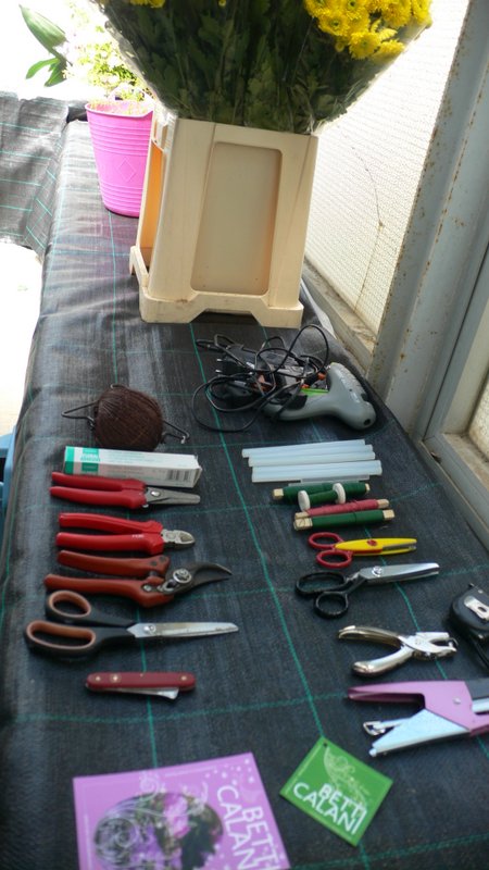 Nel giardino del Museo Nazionale G.A. Sanna di Sassari, attigua all’edificio, c’è una serra in vetro, ricovero di attrezzi per il giardino. Le Signore del Garden l’hanno trasformata in una location per questo laboratorio, perfetta, non si poteva chiedere di più. All’interno, tavoli ricoperti da telo verde, quello da orto (ottima idea) e contenitori straccolmi di tantissime varietà della macchia mediterranea mi attendevano